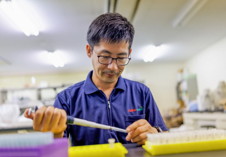 加工後の品質評価をカルビーが直接行えることに加え、カルビー内の基礎研究部門と連携できるのも、当社ならではの強みです。こうした体制によって、原料開発から商品化までを一気通貫で見据えた品種開発が実現しています。